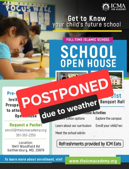 January 31 @ 10:30 am - 12:30 pm Postponed Open House I 2026 ICMA Campus 19411 Woodfield Rd, Gaithersburg, MD
